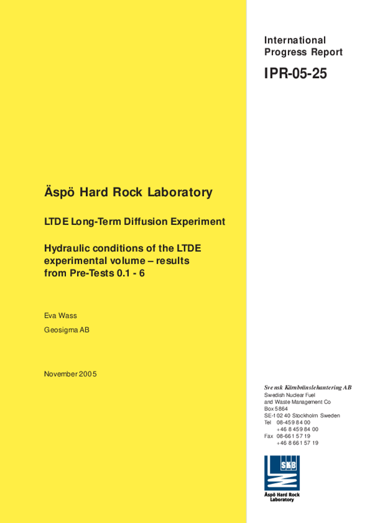 LTDE Long-Term Diffusion Experiment. Hydraulic conditions of the LTDE experimental volume - results from Pre-Tests 0.1 - 6