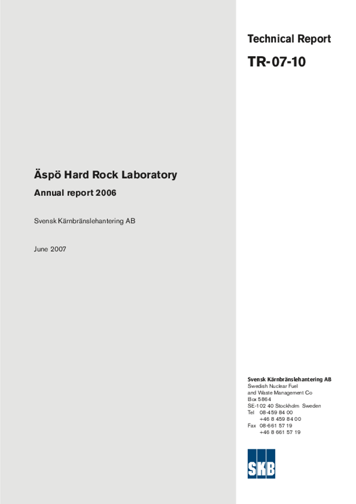 Äspö Hard Rock Laboratory. Annual report 2006