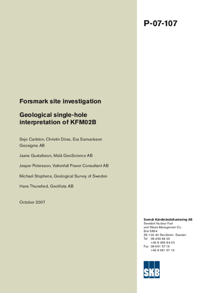 Forsmark site investigation. Geological single-hole interpretation of KFM02B