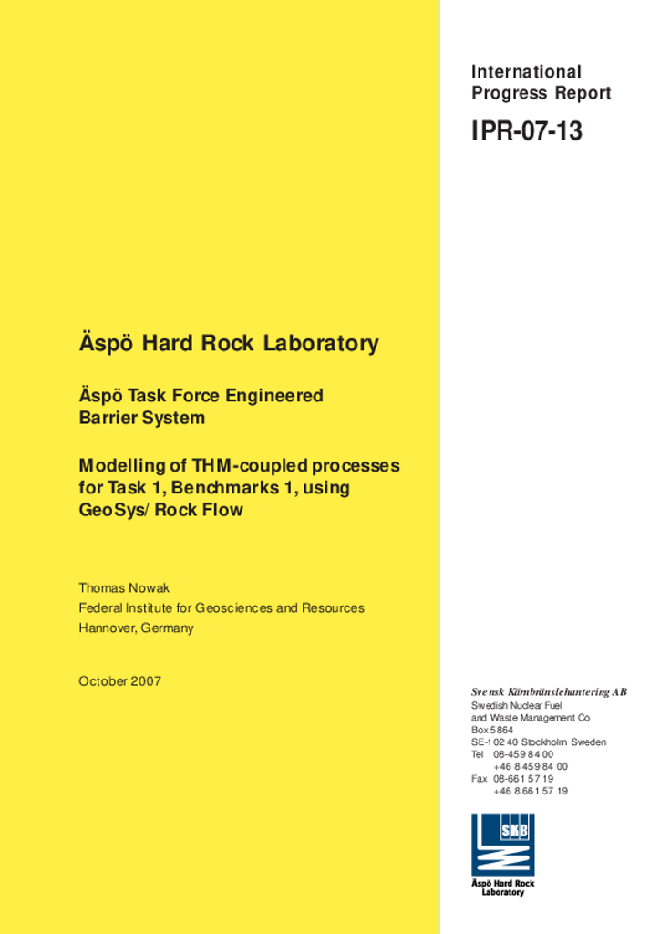Äspö Task Force Engineered Barrier System. Modelling of THM-coupled processes for Task 1, Benchmarks 1, using GeoSys/Rock Flow