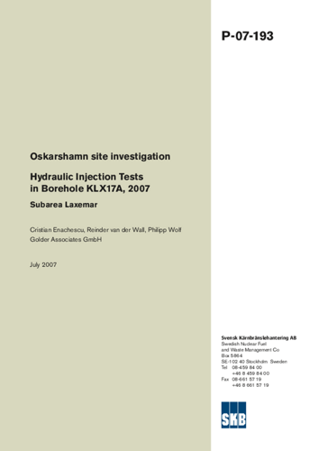 Oskarshamn site investigation. Hydraulic Injection Tests in Borehole KLX17A, 2007 Subarea Laxemar