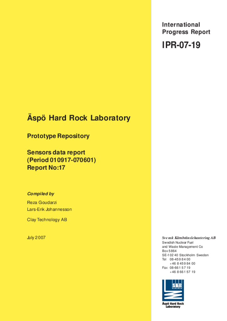 Äspö Hard Rock Laboratory. Prototype Repository. Sensors data report (Period 010917-070601) Report No:17