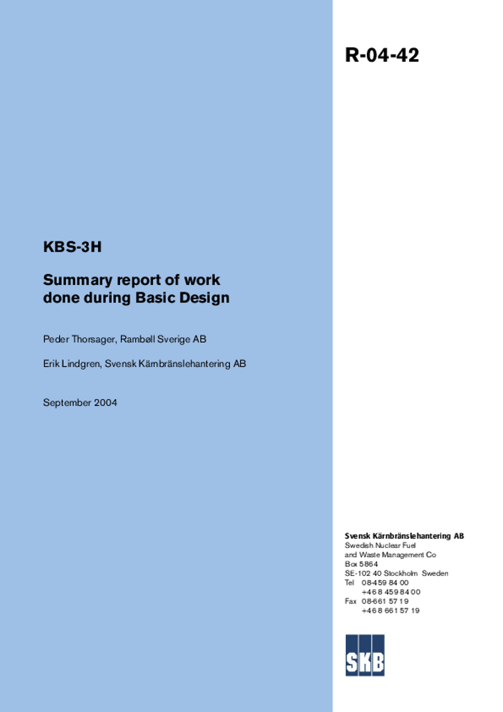KBS-3H Summary report of work done during Basic Design