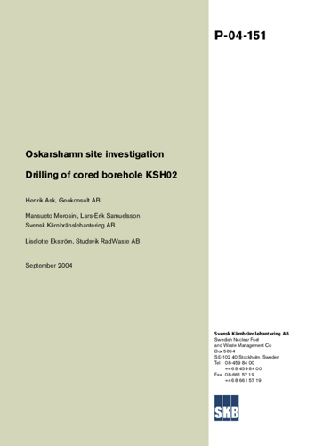 Oskarshamn site investigation. Drilling of cored borehole KSH02