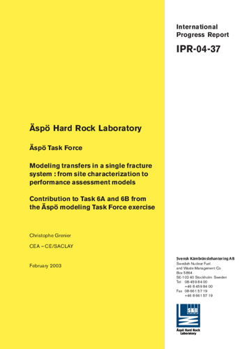 Äspö Hard Rock Laboratory. Äspö Task Force. Modeling transfers in a single fracture system: from site characterization to performance assessment models. Contribution to Task 6A and 6B from the Äspö modeling Task Force exercise