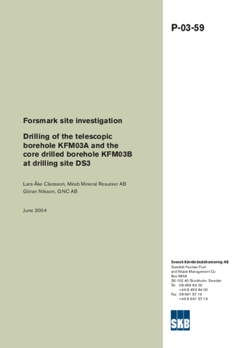 Forsmark site investigation. Drilling of the telescopic borehole KFM03A and the core drilled borehole KFM03B at drilling site DS3