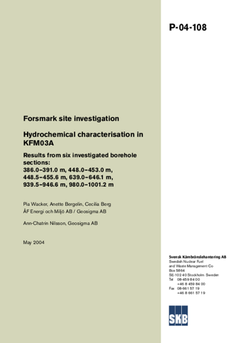 Forsmark site investigation. Hydrochemical characterisation in KFM03A. Results from six investigated borehole sections: 386.0-391.0 m, 448.0-453.0 m, 448.5-455.6 m, 639.0-646.1 m, 939.5-946.6 m, 980.0-1001.2 m