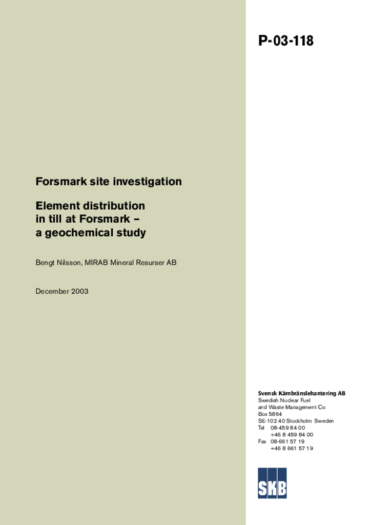 Forsmark site investigation. Element distribution in till at Forsmark - a geochemical study