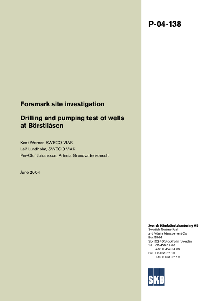 Forsmark site investigation. Drilling and pumping test of wells at Börstilåsen