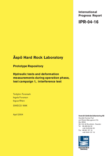 Äspö Hard Rock Laboratory. Prototype repository. Hydraulic tests and deformation measurements during operation phase, test campaign 1, interference test