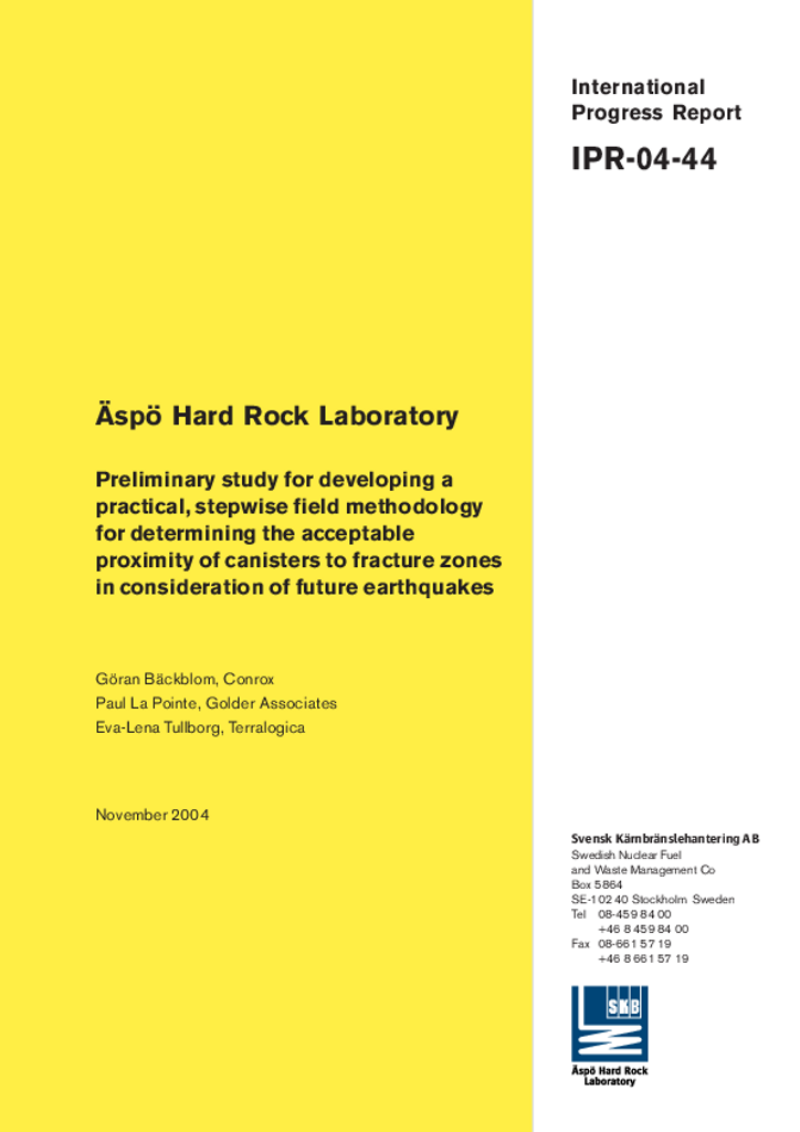 Äspö Hard Rock Laboratory. Preliminary study for developing a practical, stepwise field methodology for determining the acceptable proximity of canisters to fracture zones in consideration of future earthquakes