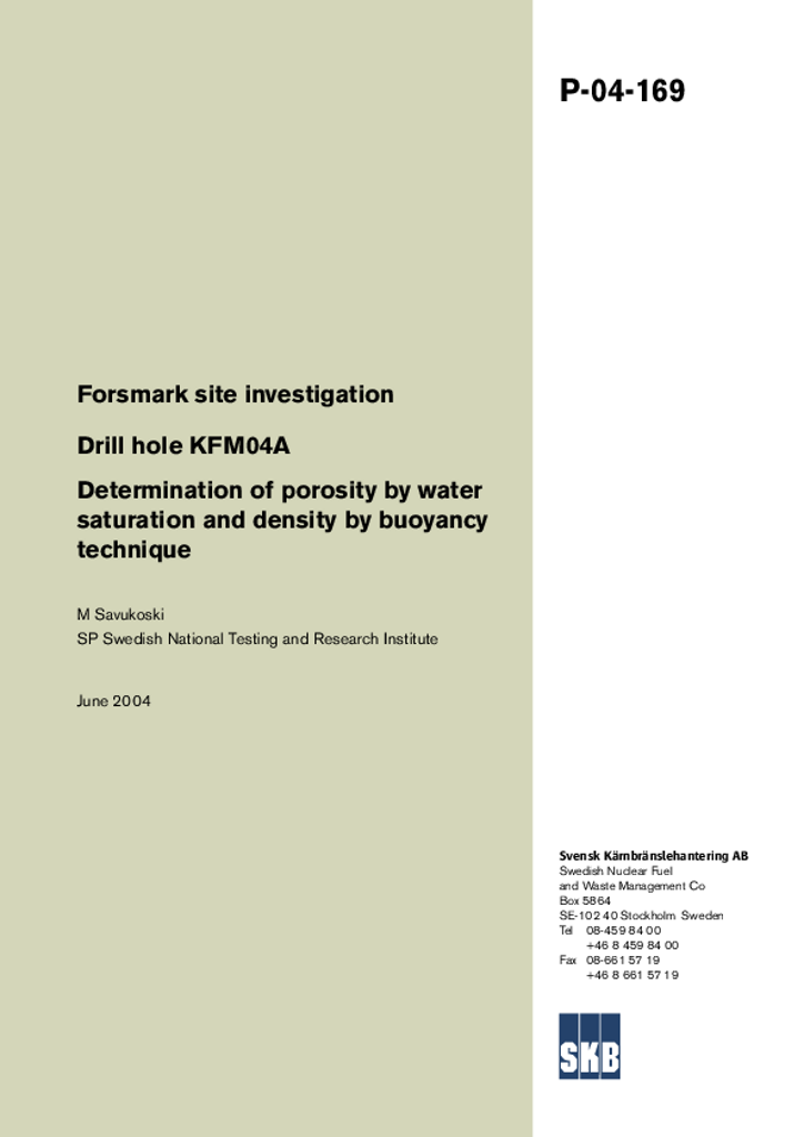 Forsmark site investigation. Drill hole KFM04A Determination of porosity by water saturation and density by buoyancy technique