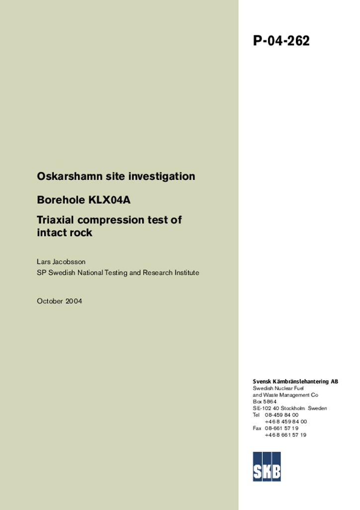 Oskarshamn site investigation. Borehole KLX04A Triaxial compression test of intact rock