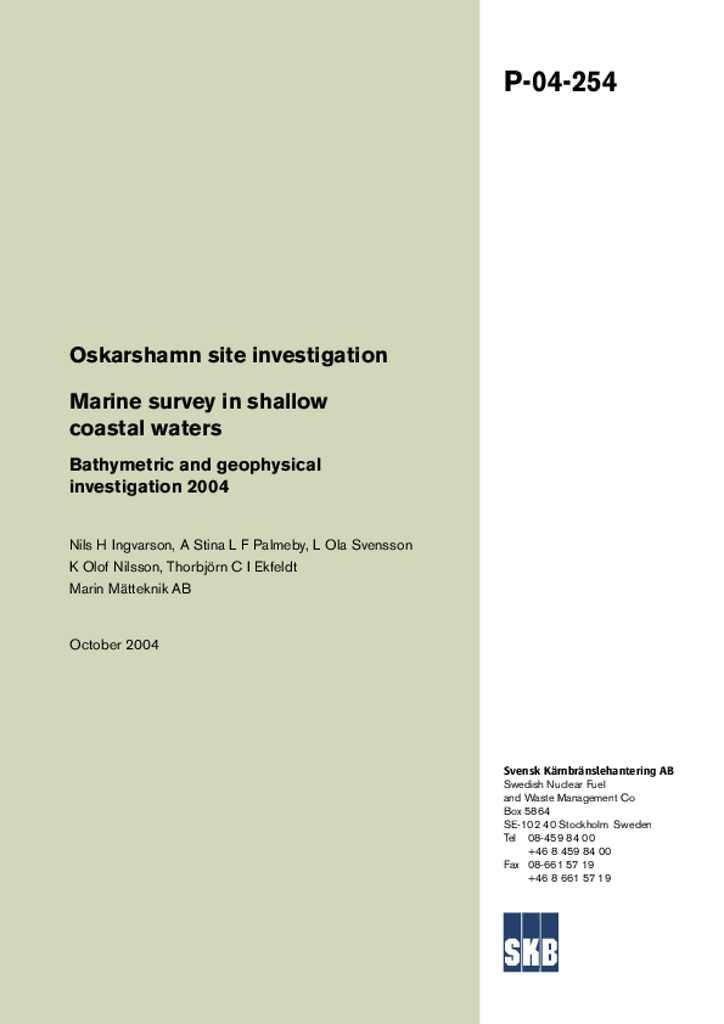 Oskarshamn site investigation. Marine survey in shallow coastal waters. Bathymetric and geophysical investigation 2004