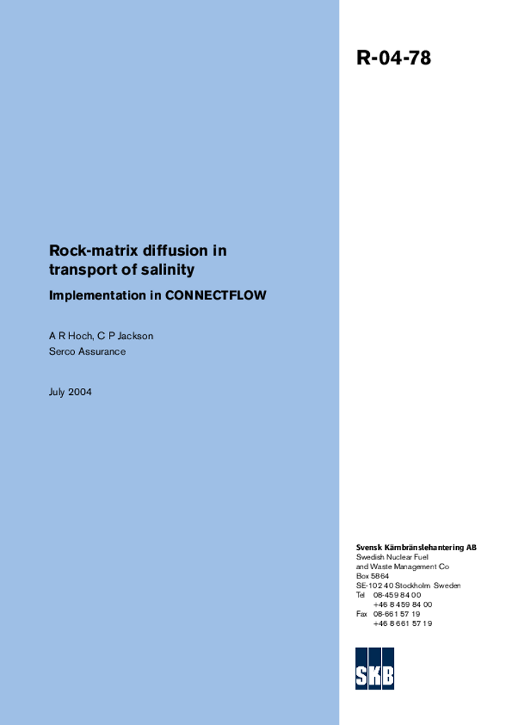 Rock-matrix diffusion in transport of salinity. Implementation in CONNECTFLOW