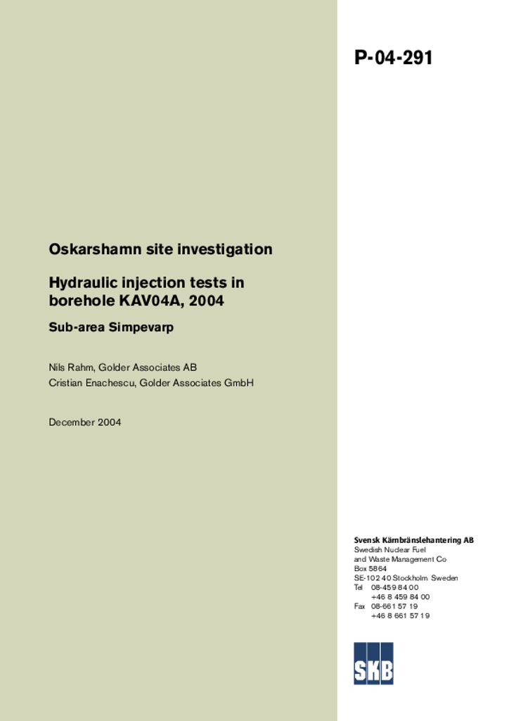 Oskarshamn site investigation. Hydraulic injection tests in borehole KAV04A, 2004. Sub-area Simpevarp