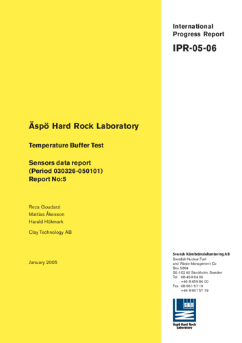 Äspö Hard Rock Laboratory. Temperature buffer test. Sensors data report (period 030326-050101) report no:5