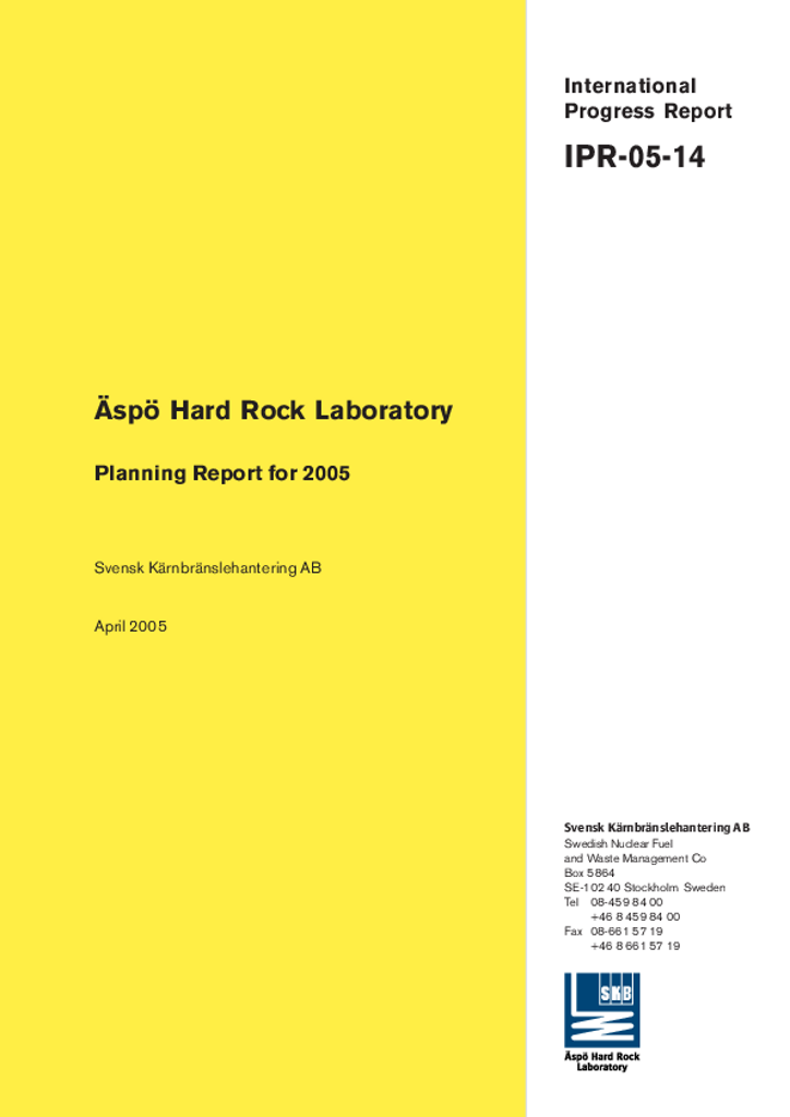 Äspö Hard Rock Laboratory. Planning report for 2005