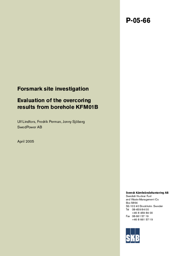 Forsmark site investigation. Evaluation of the overcoring results from borehole KFM01B