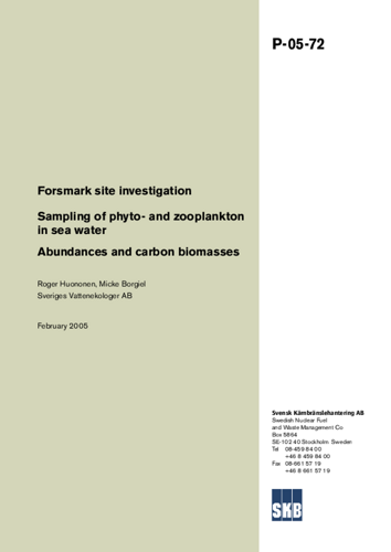 Forsmark site investigation. Sampling of phyto- and zooplankton in sea water. Abundances and carbon biomasses
