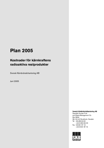 Plan 2005. Kostnader för kärnkraftens radioaktiva restprodukter