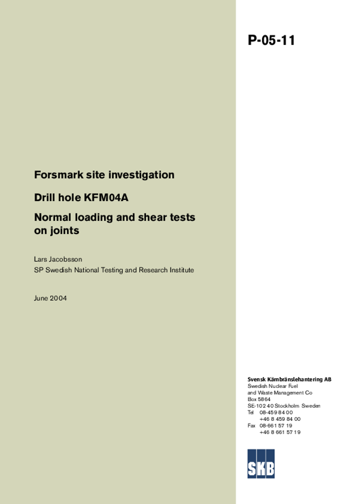 Forsmark site investigation. Drill hole KFM04A. Normal loading and shear tests on joints
