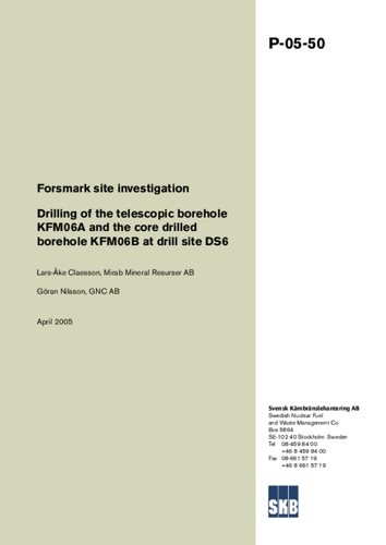 Forsmark site investigation. Drilling of the telescopic borehole KFM06A and the core drilled borehole KFM06B at drill site DS6