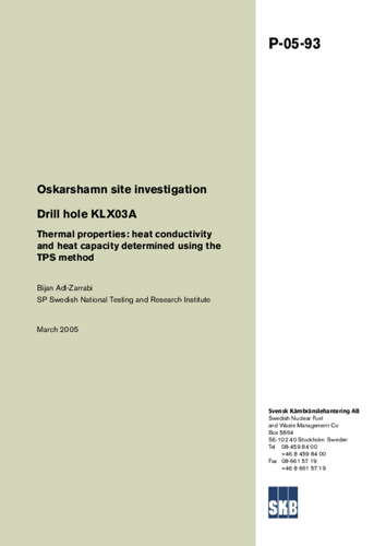 Oskarshamn site investigation. Drill hole KLX03A. Thermal properties: heat conductivity and heat capacity determined using the TPS method