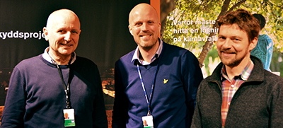 Leif Mattsson (t v), Niklas Heneryd och Peter Larsson berättade om vad som händer ute på SKB i Forsmark. Foto: SKB.