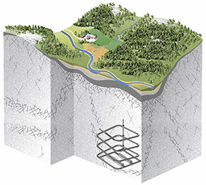 Förvarskonceptet som utvärderats innebär att förvaret byggs på cirka 500 meters djup och består av två bergssalar.