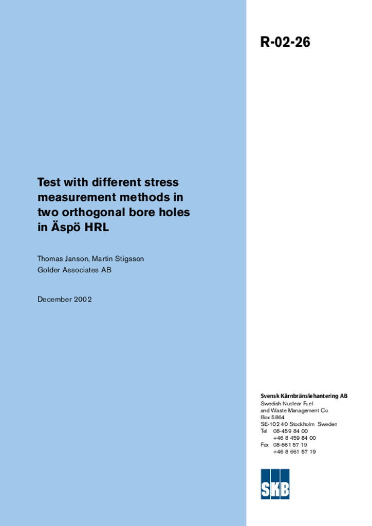 Test with different stress measurement methods in two orthogonal bore holes in Äspö HRL