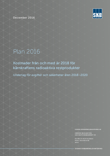 Plan 2016. Kostnader från och med år 2018 för kärnkraftens radioaktiva restprodukter. Underlag för avgifter och säkerheter åren 2018-2020